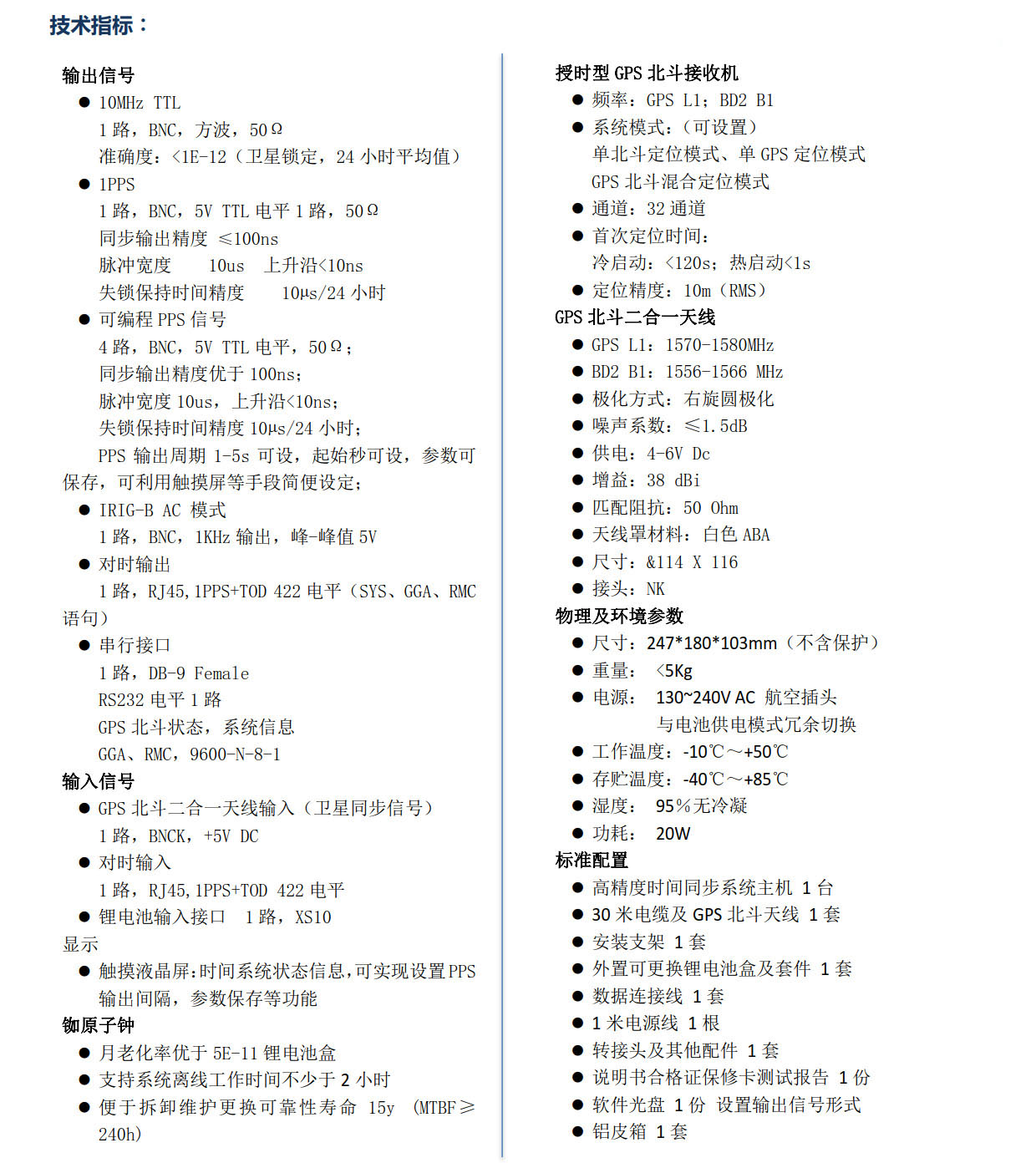HJ5435-BDV1 便攜式G選用高精度銣原子鐘和高精度授時型GPS北斗接收機,采用獨特的頻率測控技術,對銣鐘的輸出頻率進行精密測量與校準,使GPS馴服銣鐘的輸出頻率精確同步在GPS或北斗系統(tǒng)上,準確度優(yōu)于1E-12,不用進行校準就能提供高精度的頻率信號。HJ5435-BDV1 同步裝置不但提供了高精度的頻率標準,還同時提供了“復現(xiàn)”的UTC時間基準。GPS或北斗馴服銣鐘輸出的10MHz信號經過...